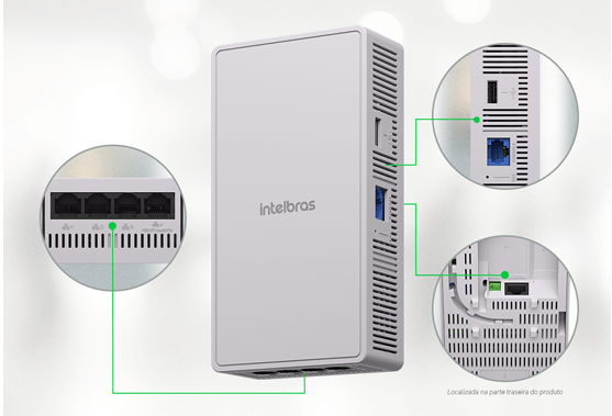 Equipado com cinco portas Gigabit e uma porta console, o dispositivo oferece conectividade eficiente. Três portas permitem transmissão de dados, uma suporta PoE Out para conectar dispositivos sem fontes adicionais e outra porta PoE alimenta o próprio equipamento.