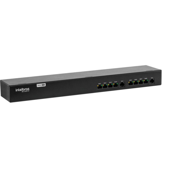 Utiliza a mesma infraestrutura via cabo de rede UTP e possui fusível permeável, LEDs e indicativos de status de funcionamento de câmera.